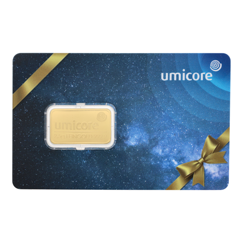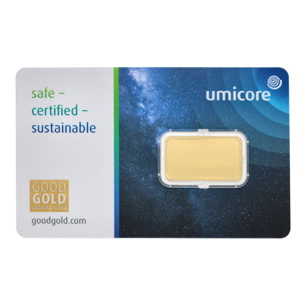 De gecertificeerde goudbaar van 2,5 gram die Goudwisselkantoor levert, is van het merk Umicore. Umicore levert London Bullion Market Association (LBMA) gecertificeerde baren. Deze zijn wereldwijd erkend, betrouwbaar en voldoen aan de hoge kwaliteitseisen. Deze goudbaren zijn voorzien van een keurmerk waardoor ze makkelijk te controleren zijn. Op dit keurmerk staat onder andere het gewicht en de zuiverheid van de goudbaar vermeld. Vaak wordt ook de producent en soms zelfs het serienummer op de goudbaar vermeldt.