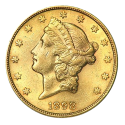 De gouden 20 dollar munt heeft een zuiverheid van 90% goud, ook wel uitgedrukt als 900/1.000e of 21,6 karaat. De munt bevat ook 10% koper. De 20 dollar heeft een totaalgewicht van 33,436 gram, waarvan 30,09 gram fijngoud. De diameter van de ‘double eagle’ is 34,1 mm en de dikte 2,41 mm.