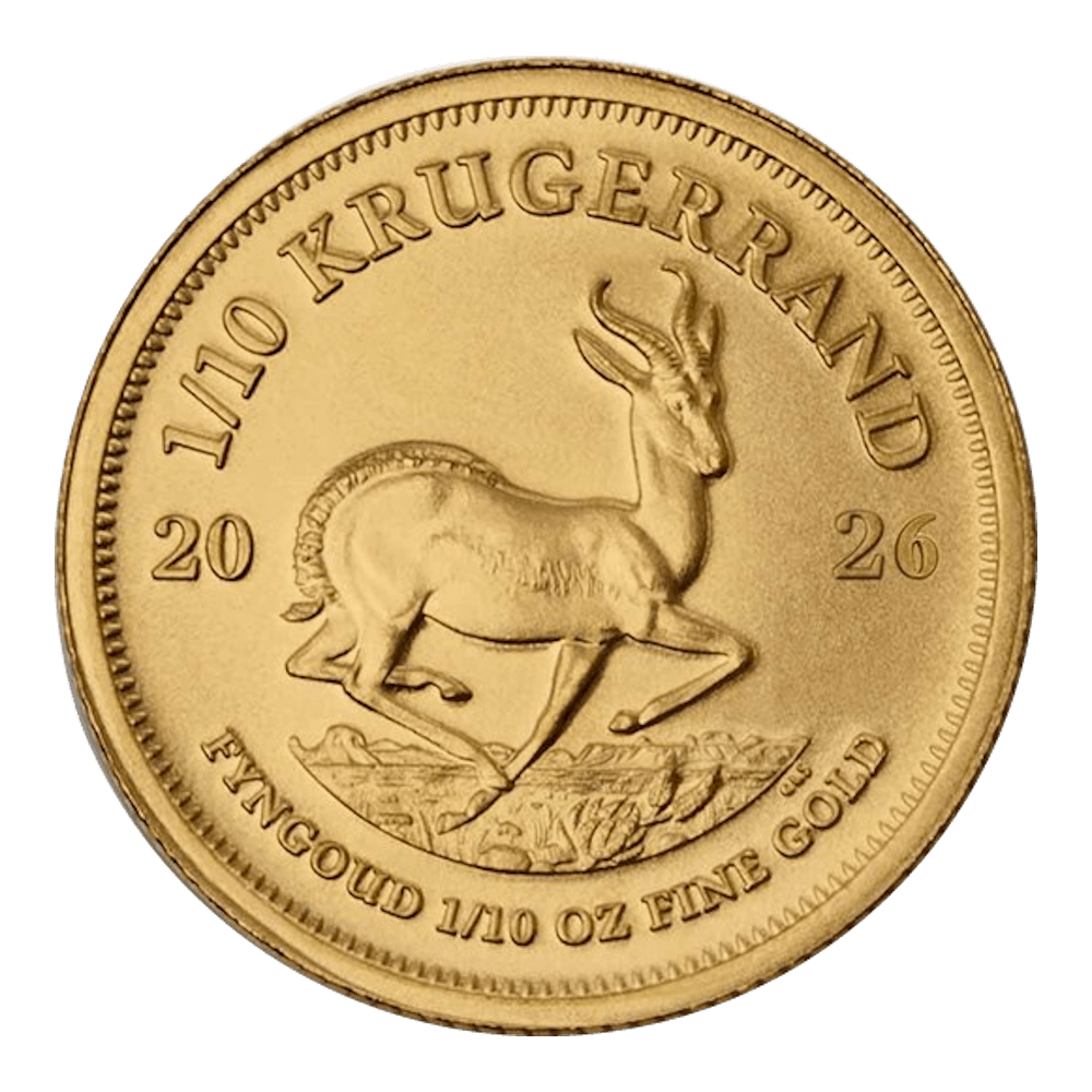 De 1/10 troy ounce gouden Krugerrand 2025 is de perfecte keuze voor als kleine investering in fysiek gouden munten. De 1/10 ounce gouden Krugerrand is de kleinste van ’s werelds bekendste gouden beleggingsmunt. Ook de 1/10 troy ounce Krugerrand is zeer geliefd. En dat is begrijpelijk. Het is een échte Krugerrand met zijn karakteristieke ontwerp, de kleur, zuiverheid, bekendheid en Zuid-Afrikaanse komaf.