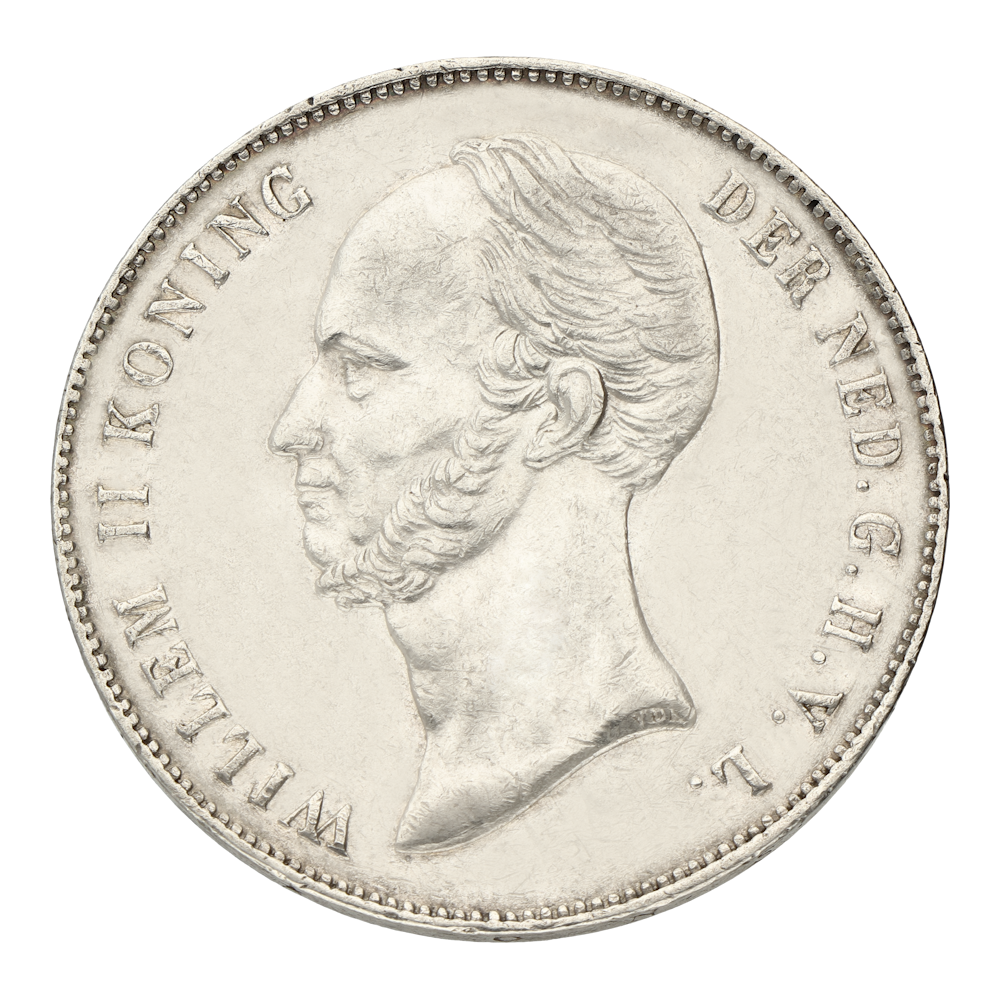 De 2½ gulden Willem II werd geslagen tussen 1840 en 1849, tijdens het koningschap van Willem II der Nederlanden. Willem II was bekend om zijn betrokkenheid bij militaire campagnes en hervormingen in Nederland. Tijdens zijn regeerperiode kwamen sociale en politieke veranderingen op gang, waardoor deze munt een belangrijke plaats inneemt in de geschiedenis van Nederland.