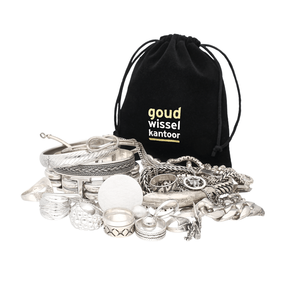 De 500 gram netto zilveren investeringssieraden bestaan uit verschillende gebruikte zilveren sieraden, geproduceerd in uiteenlopende perioden en met diverse ontwerpen. Denk hierbij aan kettingen, armbanden of andere sieraden. De samenstelling kan per bestelling verschillen.