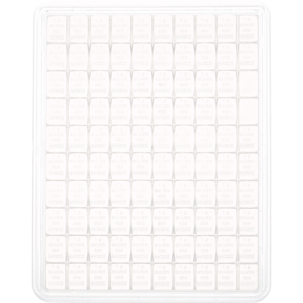 Wil je de Valcambi CombiBar met 100 zilverbaren van 1 gram kopen? Dan ben je bij Goudwisselkantoor aan het juiste adres. De Valcambi CombiBar bevat 100 zilverbaartjes van 1 gram zilver.